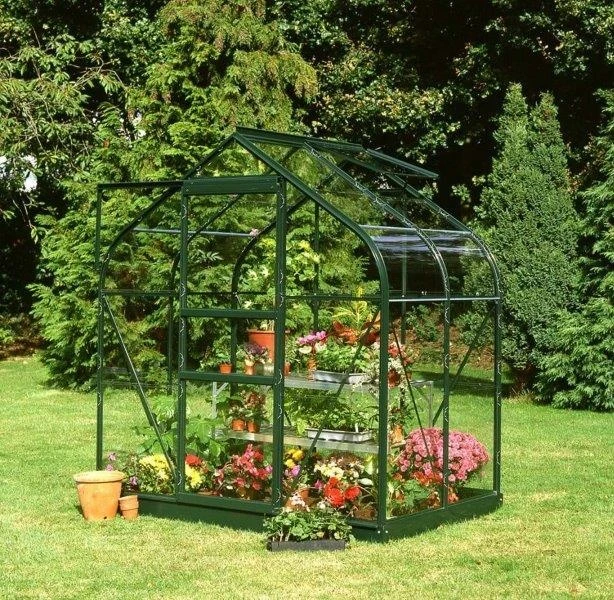 All Supreme greenhouses are supplied as standard with long pane toughened glass and a green powder coated frame. The curved eaves are created with flat acrylic panels.