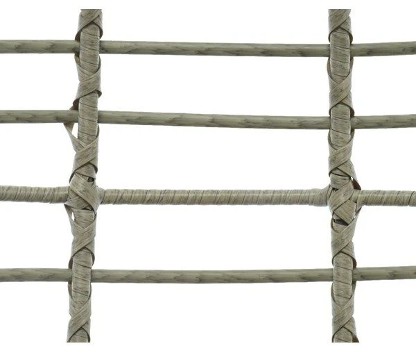 The cushion and headrest are 100% polyester.Β The iron frame has 4 layers of powder coating and is surrounded by a grey wicker.