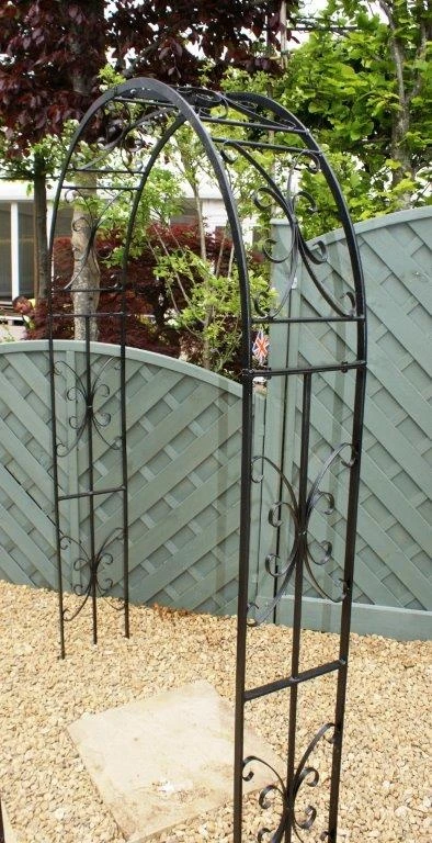The main side supports are 25mm x 8mm bar with 13mm solid steel infill and scrolls formed in 12mm x 3mm steel. It can be bolted down on to a hard surface, or fixed straight into the ground with the ground spike pack, also included. Perfect for framing a path, focusing the eye on a view or creating height, with climbing plants displayed to stunning effect.Â